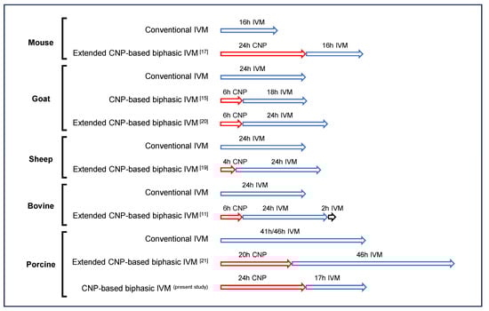 - Soto-Heras, S.; Menéndez-Blanco, I.; Catalá, M.; Izquierdo, D.; Thompson, J.G.; Paramio, M. Biphasic in vitro maturation with C-type natriuretic peptide enhances the developmental competence of juvenile-goat oocytes. PLoS ONE 2019, 14, e221663. [Google Scholar] [CrossRef]