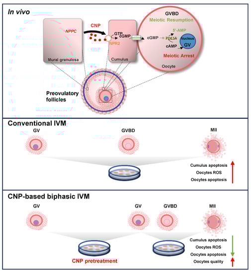 - Zhang, M.; Su, Y.; Sugiura, K.; Xia, G.; Eppig, J.J. Granulosa cell ligand NPPC and its receptor NPR2 maintain meiotic arrest in mouse oocytes. Science 2010, 330, 366–369. [Google Scholar] [CrossRef] [PubMed]