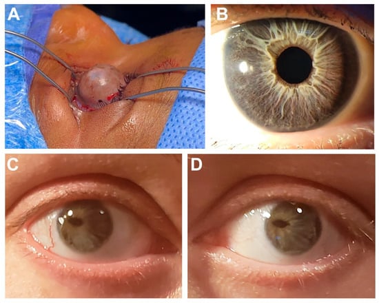 - Reis, L.M.; Maheshwari, M.; Capasso, J.; Atilla, H.; Dudakova, L.; Thompson, S.; Zitano, L.; Lay-Son, G.; Lowry, R.B.; Black, J.; et al. Axenfeld-Rieger syndrome: More than meets the eye. J. Med. Genet. 2023, 60, 368–379. [Google Scholar] [CrossRef] [PubMed]