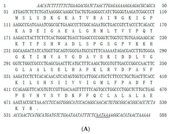The coding regions of the M. amblycephala Hbα and Hbβ genes were obtained from the M. amblycephala genome database [], which were verified using PCR amplification. To obtain the full-length cDNA sequences of the MaHbα and MaHbβ genes, 3′- and 5′- rapid-amplification of cDNA ends polymerase chain reactions (RACE-PCR) were conducted using a SMART™ RACE cDNA Amplification Kit (TaKaRa), and the primers are presented in Table 1. The RACE-PCR products were ligated with a pGEM®-T Easy Vector (Promega, Fitchburg, WI, USA) and transformed into trans5α competent cells, which were then sequenced in Beijing Genomics Institute (Wuhan, China). The full-length cDNA sequences of the M. amblycephala Hbα and Hbβ genes were assembled using the SeqMan version 7.1 software in the DNASTAR package.