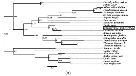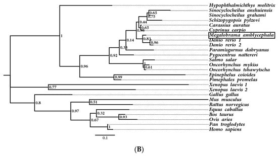 - Liu, H.; Chen, C.H.; Gao, Z.X.; Min, J.M.; Gu, Y.M.; Jian, J.B.; Jiang, X.W.; Cai, H.M.; Ebersberger, I.; Xu, M.; et al. The draft genome of blunt snout bream (Megalobrama amblycephala) reveals the development of intermuscular bone and adaptation to herbivorous diet. GigaScience 2017, 6, 1–13. [Google Scholar] [CrossRef]