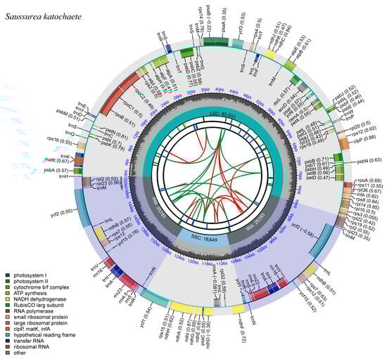2.1. Characterization of the Saussurea Chloroplast Genome