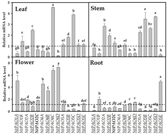 3.3. Organ-Specific Expression of 14 NtPAOs