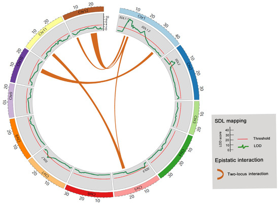 The SDL analysis was conducted using the interval mapping of additive and dominant (IM-ADD) method with the SDL functionality in QTL IciMapping v4.1 [33]. A step size of 1.0 cM was adopted for the IM-ADD method. The significance of the presence of SDLs was determined by setting the logarithm of odds (LOD) threshold value at 3.5.