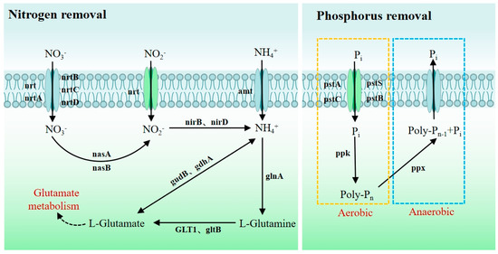 3.5.1. Genes Related to Nitrogen and Phosphorus Removal