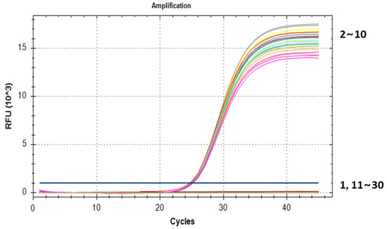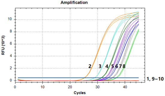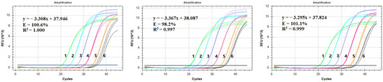2.9. Standard Curve Construction and Limit of Quantification Test for qPCR