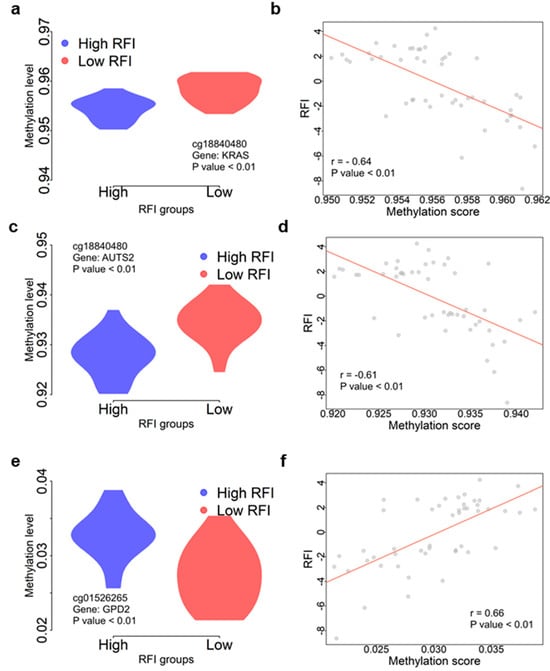 3.3. Identification of Differential Methylation CpG Sites between High and Low RFI Groups
