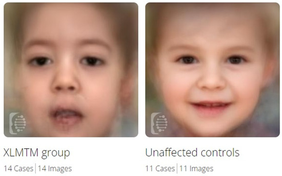 The majority of XLMTM patients have characteristic facial features (myopathic facies, uni- or bilateral ptosis, dolichocephaly with a high forehead and long face, midface hypoplasia, and a narrow, high-arched palate with malocclusion), becoming more pronounced with age, a birth length above the 97th percentile, long hands, feet, and fingers, as well as a rare condition called peliosis hepatis in up to 5% of individuals [7,10,11,12]. Thanks to the typical histopathological picture, relatively low costs, and quick results, invasive muscle biopsy has, for a long time, been considered a standard diagnostic method. However, the innovative non-invasive approach of applying DeepGestalt technology to facial features in the diagnosis of XLMTM has not yet been investigated.