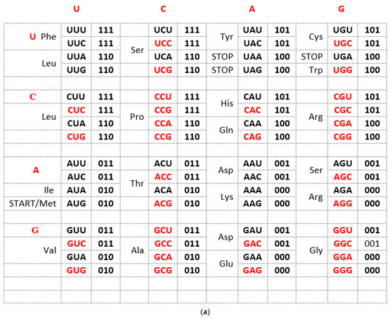 - Rosandić, M.; Paar, V. Standard Genetic Code vs. Supersymmetry Genetic code—Alphabetical table vs. physicochemical table. BioSystems 2022, 218, 104695. [Google Scholar] [CrossRef] [PubMed]