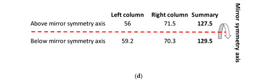 - The sum of the free energy of all codons in kcal/mol with respect to the horizontal mirror symmetry axis of the SSyGC table is almost identical above and below mirror symmetry axis (127.5:129.5) (Figure 4d). The minimal difference of 2 is probably a technical mistake.