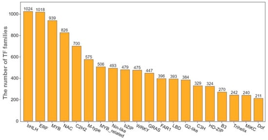 Quantitative analysis of differentially expressed transcription factors. The number above each column represents the number of transcription factor transcripts from that particular family.