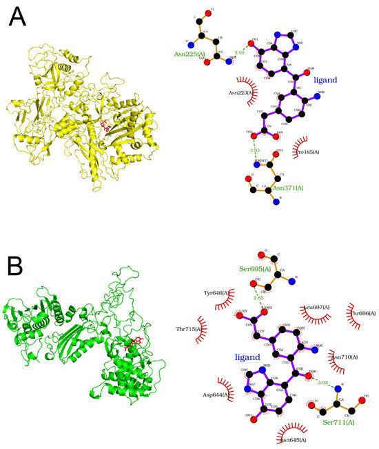 The molecular images were generated using the PyMOL Molecular Graphics System, version 2.5.4, Schrodinger LLC (https://newsite.schrodinger.com/pymol/; accessed on 20 March 2023). LigPlot2 was also used for the generation of two-dimensional (2D) diagrams of the protein–ligand interactions [31].