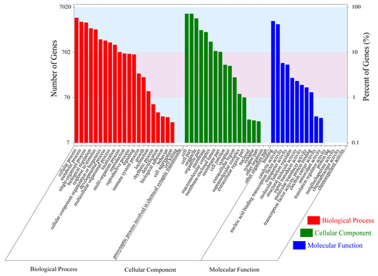 Eggnog-mapper v2 [42] and InterProScan v5.0 (https://github.com/ebi-pf-team/interproscan, accessed on 20 October 2022) were used to obtain GO and KOG annotations. After the prediction of protein sequences, the unigenes were aligned with the NR, Swiss-Prot, and KEGG databases by using Diamond (E-value < 1.0 × 10−5) [43].