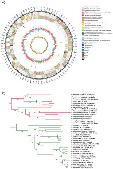 - Xie, J.; Shi, H.; Du, Z.; Wang, T.; Liu, X.; Chen, S. Comparative genomic and functional analysis reveal conservation of plant growth promoting traits in Paenibacillus polymyxa and its closely related species. Sci. Rep. 2016, 6, 21329. [Google Scholar] [CrossRef]