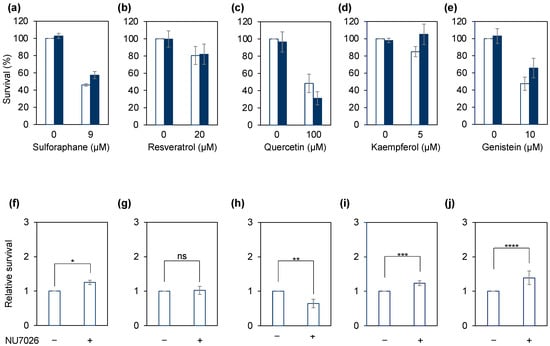 - Naumann, P.; Liermann, J.; Fortunato, F.; Schmid, T.E.; Weber, K.-J.; Debus, J.; Combs, S.E. Sulforaphane enhances irradiation effects in terms of perturbed cell cycle progression and increased DNA damage in pancreatic cancer cells. PLoS ONE 2017, 12, e0180940. [Google Scholar] [CrossRef]