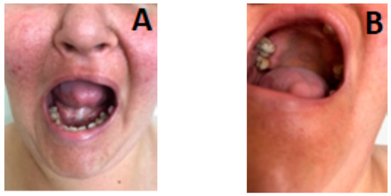 Oro-dental features: (A) Dental caries, sublingual fibroma; (B) Oligodontia, tooth enamel alteration.