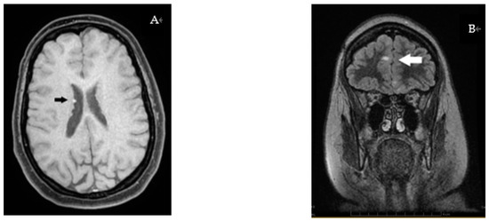 Brain MRI: (A) Subependymal nodules; (B) Frontal cortico-subcortical tubers.