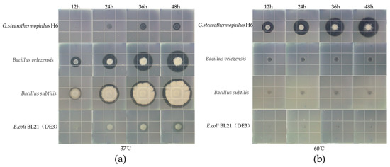 - Nazina, T.N.; Tourova, T.P.; Poltaraus, A.B.; Novikova, E.V.; Grigoryan, A.A.; Ivanova, A.E.; Lysenko, A.M.; Petrunyaka, V.V.; Osipov, G.A.; Belyaev, S.S.; et al. Taxonomic study of aerobic thermophilic bacilli: Descriptions of Geobacillus subterraneus gen. nov., sp. nov. and Geobacillus uzenensis sp. nov. from petroleum reservoirs and transfer of Bacillus stearothermophilus, Bacillus thermocatenulatus, Bacillus thermoleovorans, Bacillus kaustophilus, Bacillus thermodenitrificans to Geobacillus as the new combinations G. stearothermophilus, G. th. Int. J. Syst. Evol. Microbiol. 2001, 51, 433–446. [Google Scholar]