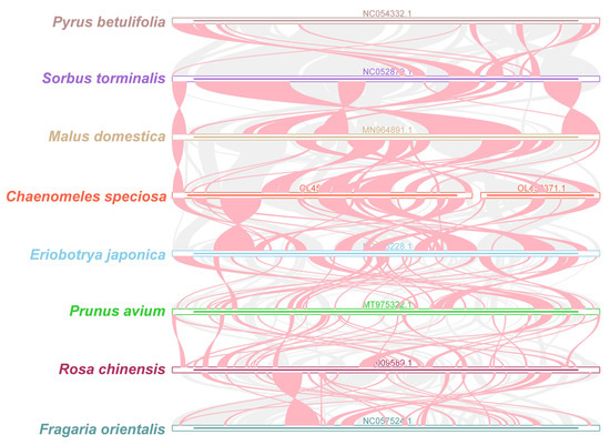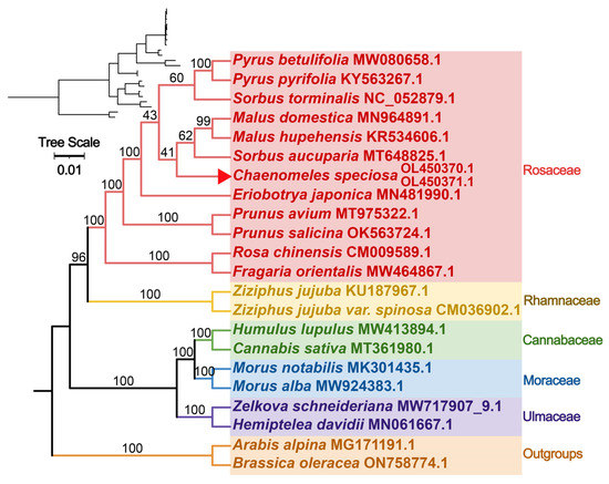 - Sun, J.H.; Wang, Y.H.; Liu, Y.L.; Xu, C.; Yuan, Q.J.; Guo, L.P.; Huang, L.Q. Evolutionary and phylogenetic aspects of the chloroplast genome of Chaenomeles species. Sci. Rep. 2020, 10, 11466. [Google Scholar] [CrossRef]