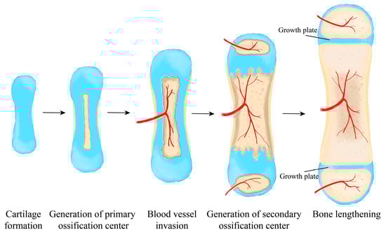 - Long, F.; Ornitz, D.M. Development of the endochondral skeleton. Cold Spring Harb. Perspect. Biol. 2013, 5, a008334. [Google Scholar] [CrossRef]