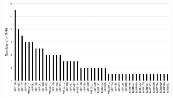 Distribution of conserved miRNAs in the miRNA family.