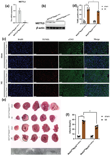- Gong, R.; Wang, X.; Li, H.; Liu, S.; Jiang, Z.; Zhao, Y.; Yu, Y.; Han, Z.; Yu, Y.; Dong, C.; et al. Loss of m6A methyltransferase METTL3 promotes heart regeneration and repair after myocardial injury. Pharmacol. Res. 2021, 174, 105845. [Google Scholar] [CrossRef] [PubMed]