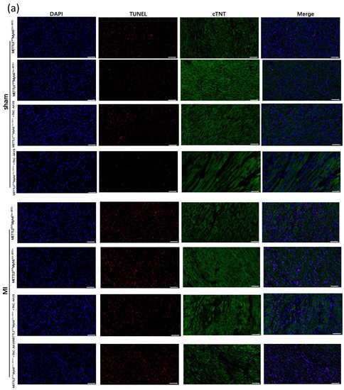 3.3. METTL3 Deficiency Attenuates Cardiac Dysfunction and Cardiac Fibrosis after Myocardial Infarction