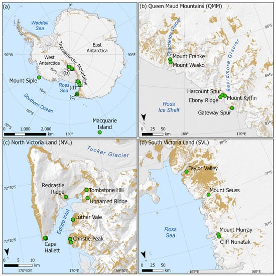 Funding and/or logistic support were provided by: New Zealand Antarctic Research Institute (NZARI) and Antarctica New Zealand (AntNZ) to IDH for work in South Victoria Land (SVL) and the Queen Maud Mountains (QMM); PC was supported by NERC core funding to the BAS “Biodiversity, Evolution and Adaptation” Team; SCC and the work in North Victoria Land (NVL) were supported by a grant from NZARI and a Catalyst Award from the New Zealand Ministry of Business Innovation and Employment (MBIE); we thank AntNZ, the Korea Polar Research Institute (KOPRI) and staff at Jan Bogo Station for support of the work in NVL; the United States National Science Foundation (ANT-1341736, OPP-1637708) for support of D.H.W., I.D.H. and B.J.A. in S.V.L. and Q.M.M.; and the Antarctic Circumpolar Expedition (ACE) for funding to SLC (for Mt. Siple) and the Australian Antarctic Program for funding to SLC (for Macquarie Island).