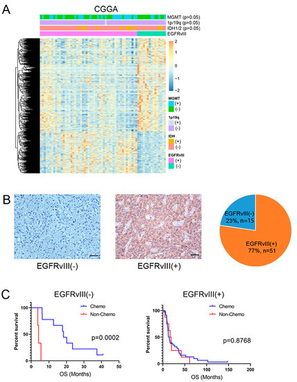 3.1. EGFRvIII Affected the Gene Expression Profile of GBM Patients, and GBM Patients with EGFRvIII (+) Had Low Sensitivity to TMZ