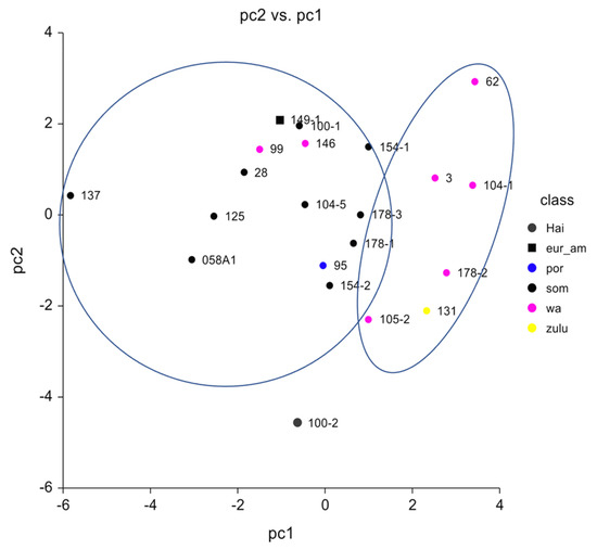 - Patterson, N.; Price, A.L.; Reich, D. Population Structure and Eigenanalysis. PLoS Genet. 2006, 2, e190. [Google Scholar] [CrossRef]