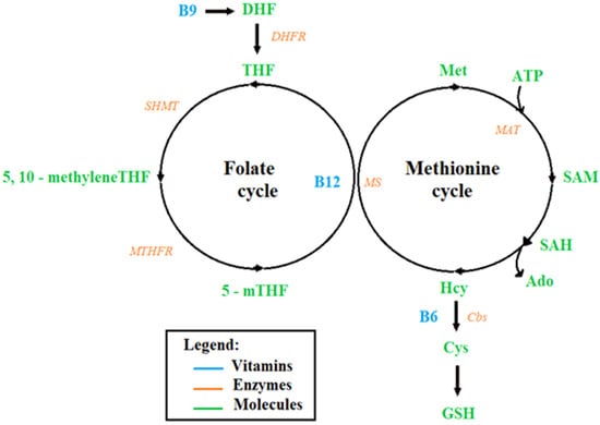 - Lyon, P.; Strippoli, V.; Fang, B.; Cimmino, L. B Vitamins and One-Carbon Metabolism: Implications in Human Health and Disease. Nutrients 2020, 12, 2867. [Google Scholar] [CrossRef] [PubMed]