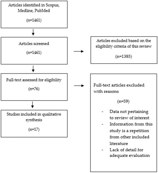 - Liberati, A.; Altman, D.G.; Tetzlaff, J.; Mulrow, C.; Gøtzsche, P.C.; Ioannidis, J.P.A.; Clarke, M.; Devereaux, P.J.; Kleijnen, J.; Moher, D. The PRISMA statement for reporting systematic reviews and meta-analyses of studies that evaluate health care interventions: Explanation and elaboration. Ann. Intern. Med. 2009, 151, W65–W94. [Google Scholar] [CrossRef]