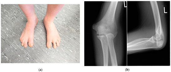 Taken together, the most constant feature is the anomaly of elbow joint, which occurred in 94% of all patients. This feature is absent only in the two patients described by Rodriguez-Zabala et al. and in the patient described by Sentchordi-Montané et al. [11,13]. Vertebrae synostoses and anomalies of the hands and feet occurred in 20–64% of all patients. However, the number of vertebrae synostosis could be underestimated since no systematic radiological examination of the spine was performed.