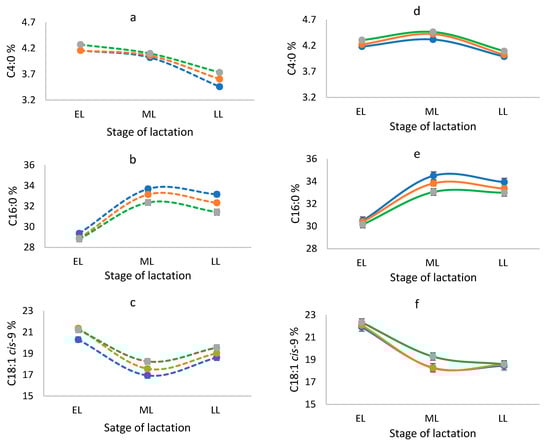 - Stoop, W.M.; Bovenhuis, H.; Heck, J.M.L.; van Arendonk, J.A.M. Effect of lactation stage and energy status on milk fat composition of Holstein-Friesian cows. J. Dairy Sci. 2009, 92, 1469–1478. [Google Scholar] [CrossRef]