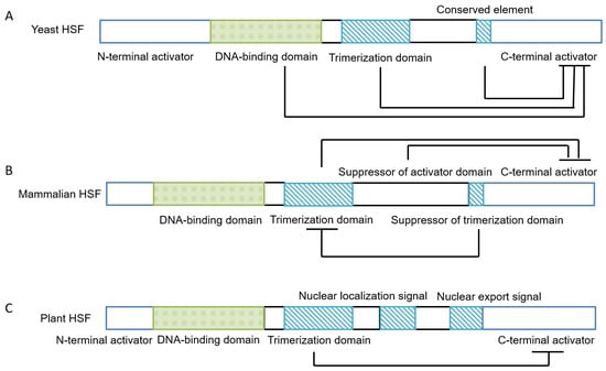 The structures of HSF genes. (A) Yeast. (B) Mammalian. (C) Plant. Abbreviations: HSF, heat shock factor.