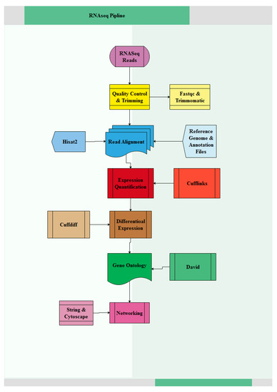 - Kim, D.; Langmead, B.; Salzberg, S.L. HISAT: A fast spliced aligner with low memory requirements. Nat. Methods 2015, 12, 357–360. [Google Scholar] [CrossRef]