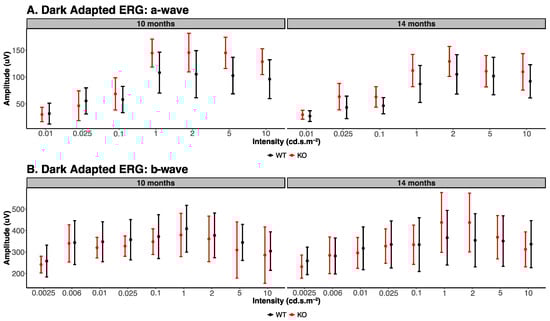 | Dark Adapted ERG Parameters (14 Months) | ||||||