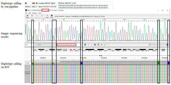 The MH, sample numbers, and Sanger primers are shown in Supplementary Table S2. We did not observe inconsistent haplotypes among Sanger sequencing, IGV, or our pipeline in the analyzed MH loci or unrelated individuals. Figure 3 shows the corresponding genotypes of the three analysis methods for a random MH in a random sample. The results showed 100% concordance. Supplementary Figure S2 presents the remaining examples.
