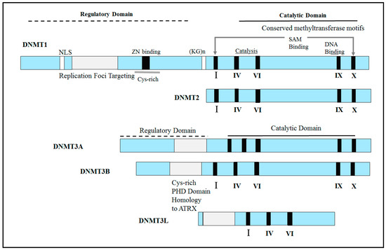 - Zhang, W.; Xu, J. DNA methyltransferases and their roles in tumorigenesis. Biomark. Res. 2017, 5, 1. [Google Scholar] [CrossRef] [PubMed]