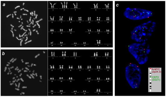 - Domaradzka, J.; Deperas, M.; Obersztyn, E.; Kucińska-Chahwan, A.; Brison, N.; Van Den Bogaert, K.; Roszkowski, T.; Kędzior, M.; Bartnik-Głaska, M.; Łuszczek, A.; et al. A Placental Trisomy 2 Detected by NIPT Evolved in a Fetal Small Supernumerary Marker Chromosome (SSMC). Mol. Cytogenet. 2021, 14, 18. [Google Scholar] [CrossRef]