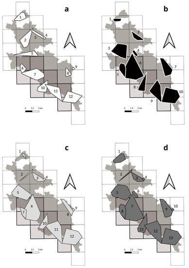 - Ciucci, P.; Boitani, L.; Falco, M.; Maiorano, L. Hierarchical, Multi-Grain Rendezvous Site Selection by Wolves in Southern Italy. J. Wildl. Manag. 2018, 82, 1049–1061. [Google Scholar] [CrossRef]