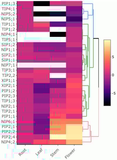3.5. Expression Pattern of PruavAQP Genes in Different Organs