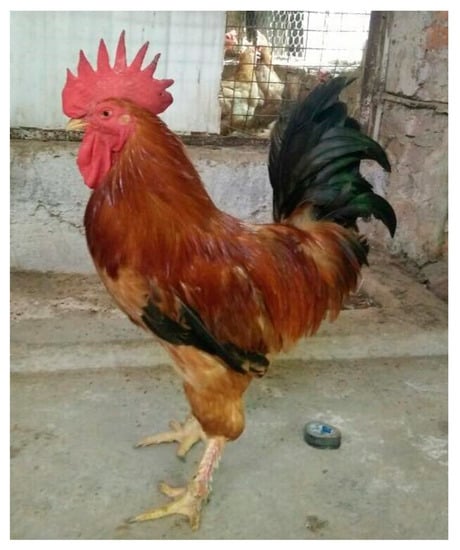 Vietnam, located in Southeast Asia, is one of the domestication centers of wild jungle fowls from about 10,000 years ago and it is also the area of origin for several indigenous chicken breeds or ecotypes in Asia [1]. More than 30 Vietnamese native chicken breeds has been identified based on their places of origin, morphology, and conservation status [1]. Chicken is an important part of Vietnamese culture since it is commonly used in Vietnamese cuisine, and many traditional dishes feature chicken as a main ingredient. Moreover, it also plays a role in Vietnamese folklore and superstitions. For example, a rooster is considered a symbol of good luck and is believed to bring prosperity and happiness. In Vietnamese culture, it is also stated that the sound of a rooster crowing can ward off evil spirits and bring blessings to the household. Moreover, it is used as a traditional medicine to improve the health of the sick and is used for cockfighting in annual festivals. Native chickens are commonly raised in Vietnamese households for both personal consumption and for sale in local markets. For many farmers, selling chicken is an important source of income for their families. To (Tò in Vietnamese) chicken is one of the Vietnamese indigenous chicken breeds. It is originated from To village, An My commune, Quynh Phu district of Thai Binh province, belonging to Red River Dental in Northeast Vietnam. At one day old, male and female chickens have similar physical features such as milky white feathers, a golden beak, and pinkish-white legs [2]. At 19 weeks of age, the rooster has dark red feathers, a single comb, bright red wattle, yellow beak, and long yellow legs, while the hen has brown body feathers, a single comb, and a golden beak and legs [2]. To chicken has a distinct feature compared to other Vietnamese indigenous chickens as it has feathers on its legs from the feet to the junction with the thigh. In addition, To chicken leg gap has a purple-red color (Figure 1). The average age of sexual maturation is approximately 148 days, and egg yield is from 120 to 140 eggs/hen per year [3]. The body weights of roosters and hens at 19 weeks of age are about 2.2 kg and 1.8 kg, respectively [2].