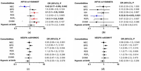 - Mahlman, M.; Huusko, J.M.; Karjalainen, M.K.; Kaukola, T.; Marttila, R.; Ojaniemi, M.; Haataja, R.; Lavoie, P.M.; Rämet, M.; Hallman, M. Genes Encoding Vascular Endothelial Growth Factor A (VEGF-A) and VEGF Receptor 2 (VEGFR-2) and Risk for Bronchopulmonary Dysplasia. Neonatology 2015, 108, 53–59. [Google Scholar] [CrossRef]