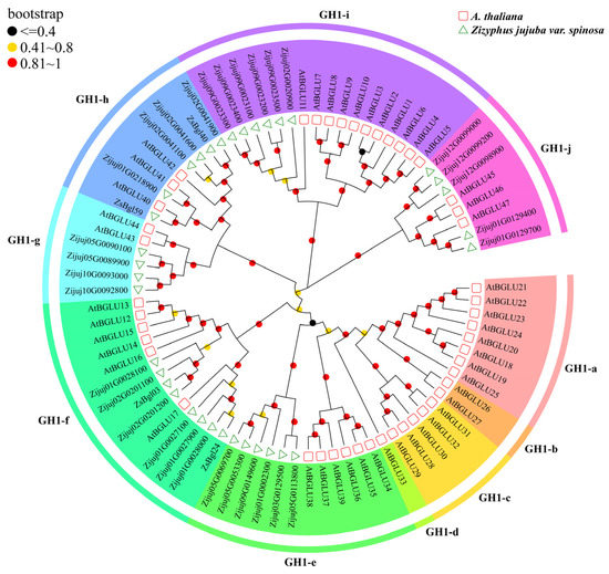 Yang, M.; Ma, Y.; Si, X.; Liu, X.; Geng, X.; Wen, X.; Li, G.; Zhang, L.; Yang, C.; Zhang, Z. Analysis of the Glycoside Hydrolase Family 1 from Wild Jujube Reveals Genes Involved in the Degradation of Jujuboside A. Genes 2023, 14, 1135. https://doi.org/10.3390/genes14061135