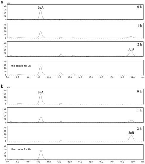 - Wakuta, S.; Hamada, S.; Ito, H.; Matsuura, H.; Nabeta, K.; Matsui, H. Identification of a β-glucosidase hydrolyzing tuberonic acid glucoside in rice (Oryza sativa L.). Phytochemistry 2010, 71, 1280–1288. [Google Scholar] [CrossRef]