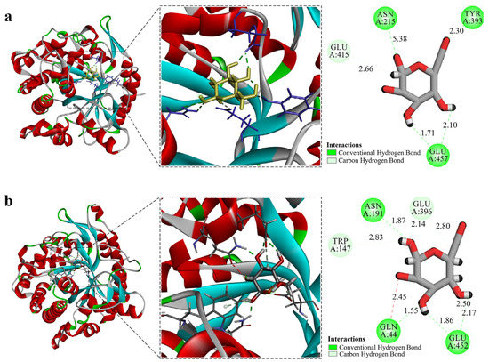 - Henrissat, B.; Callebaut, I.; Fabrega, S.; Lehn, P.; Mornon, J.-P.; Davies, G. Conserved catalytic machinery and the prediction of a common fold for several families of glycosyl hydrolases. Proc. Natl. Acad. Sci. USA 1995, 92, 7090–7094. [Google Scholar] [CrossRef]