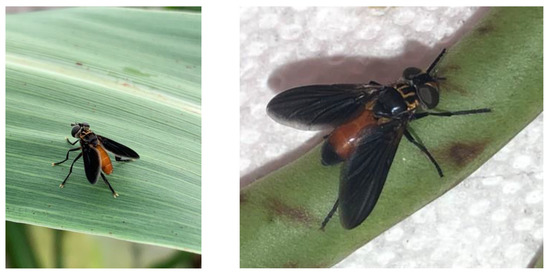- Pilkay, G.L.; Reay-Jones, F.R.F.; Greene, J.K. Host Preference of the Parasitoid Trichopoda pennipes (Diptera: Tachinidae) with Euschistus servus and Nezara viridula (Hemiptera: Pentatomidae). J. Entomol. Sci. 2014, 49, 56–62. [Google Scholar] [CrossRef]