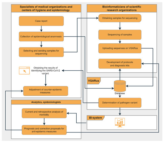 Summary scheme of VGARus integration into COVID-19 surveillance system in Russia (“Flowchart Maker & Online Diagram Software” [21] was used to make the figure).