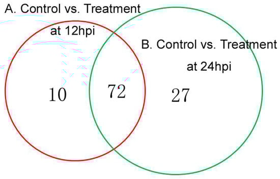 Venn diagram of the differentially expressed proteins between 12 hpi and 24 hpi.